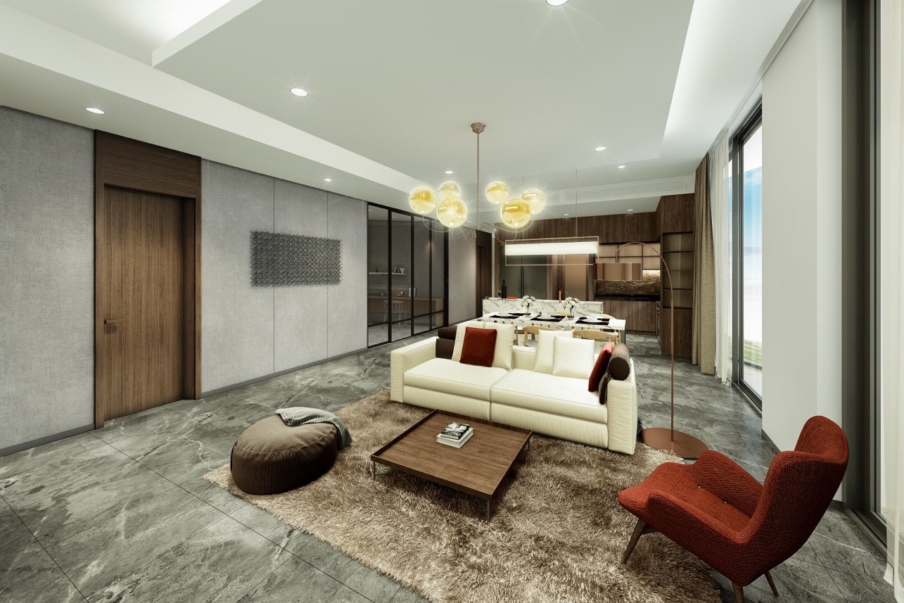 Phòng khách của mỗi căn hộ làm trung tâm, kết nối các không gian chức năng khác như: phòng ngủ, phòng ăn và khu bếp, phòng vệ sinh chung. Với thiết kế rộng rãi, thoáng mát, phòng khách như một giao điểm nhằm tăng sự tương tác giữa các thành viên, tạo ra những khoảnh khắc bình yên giữa nhịp sống đô thị bận rộn. Trong khi đó, 4 phòng ngủ được bố trí một cách khéo léo tại các góc căn hộ, mang đến không gian riêng nhưng vẫn giữ được sự gắn bó trong gia đình.