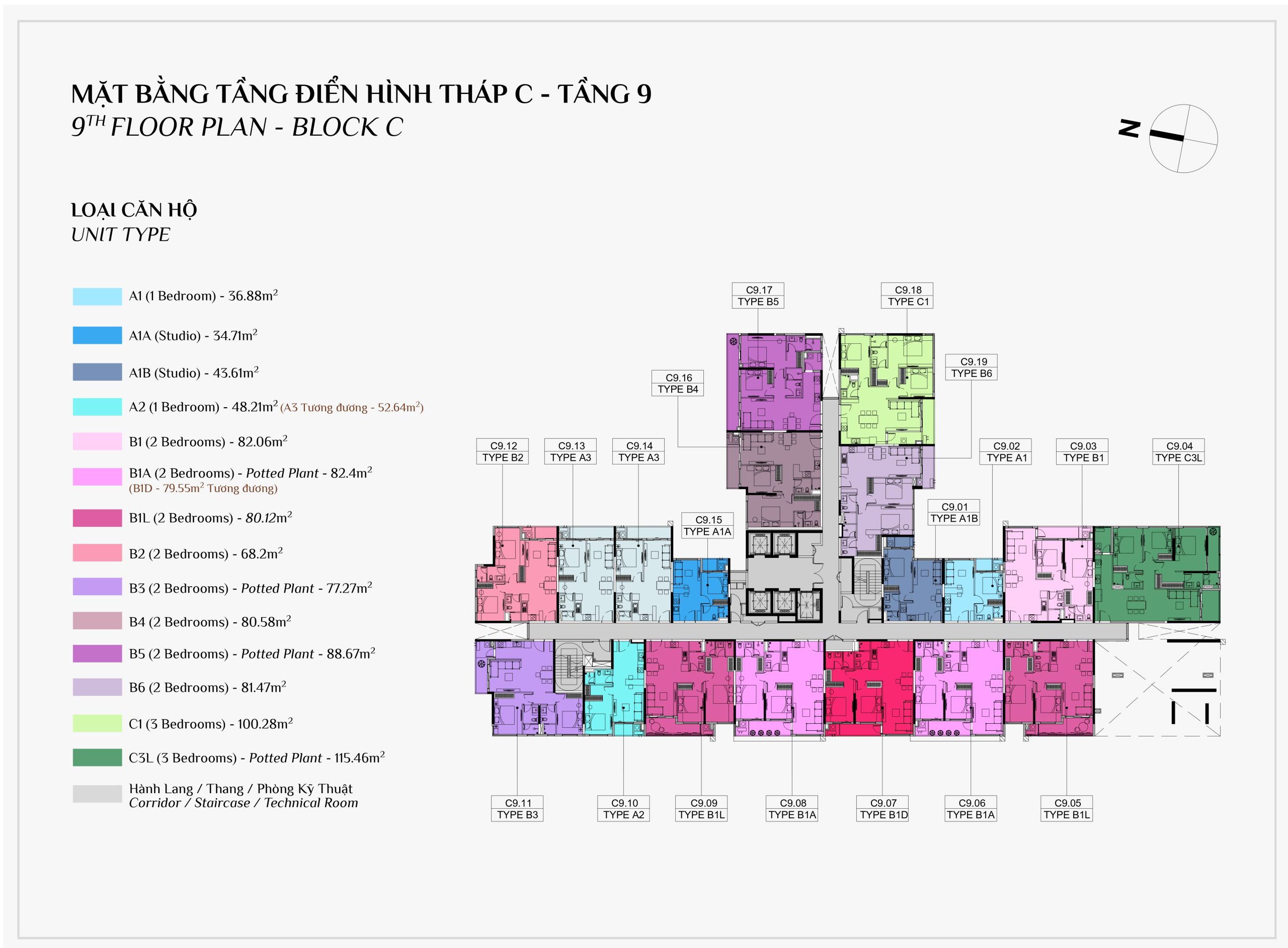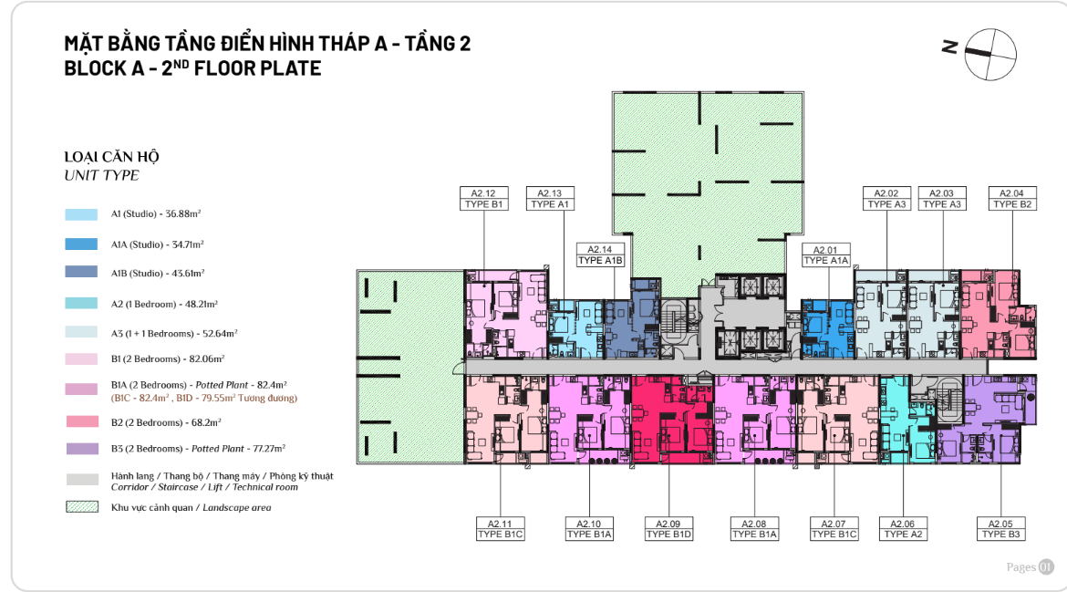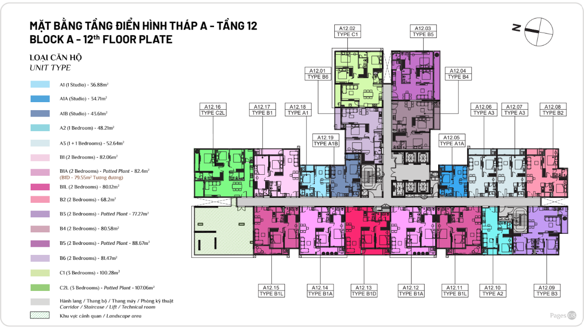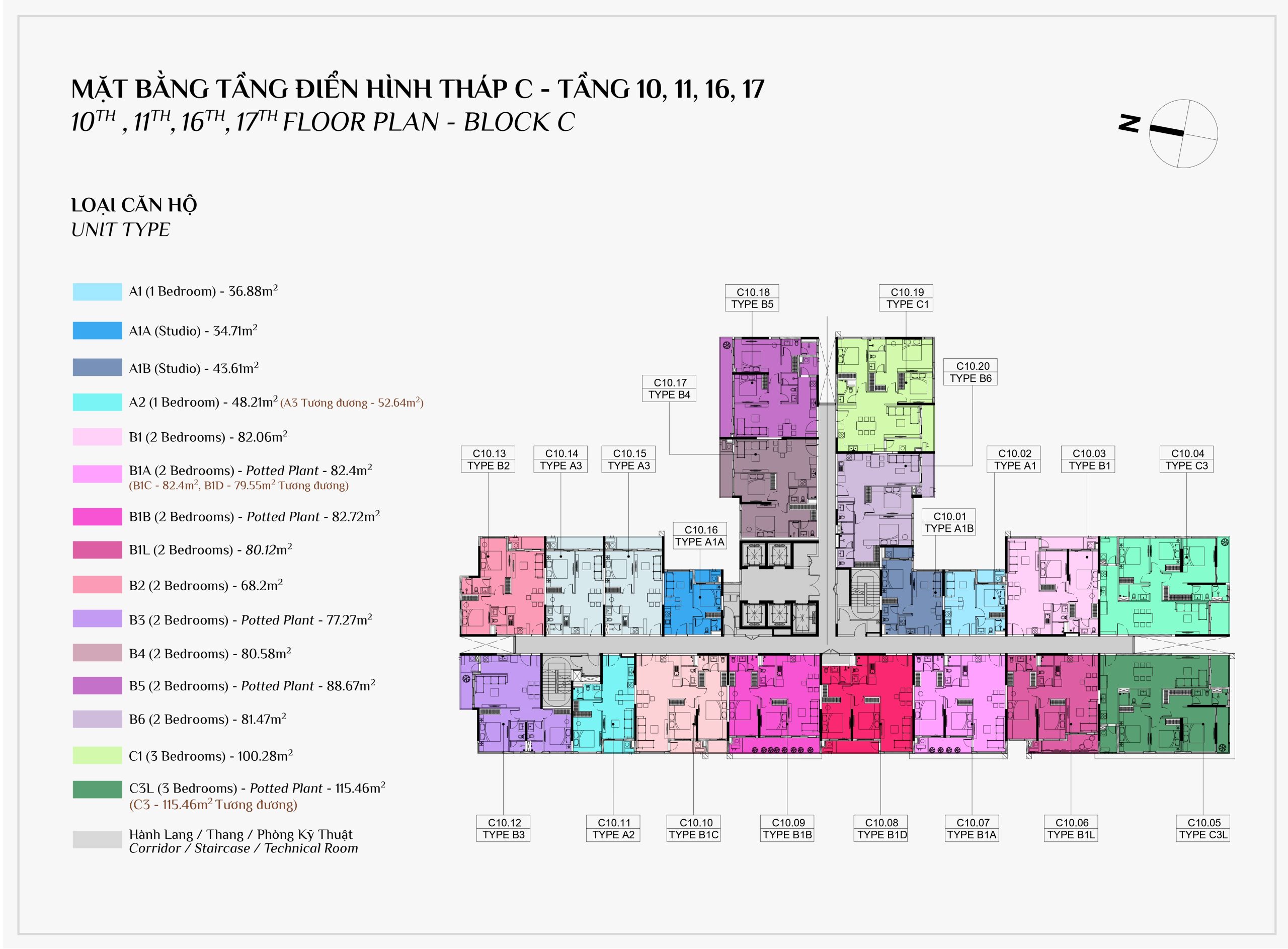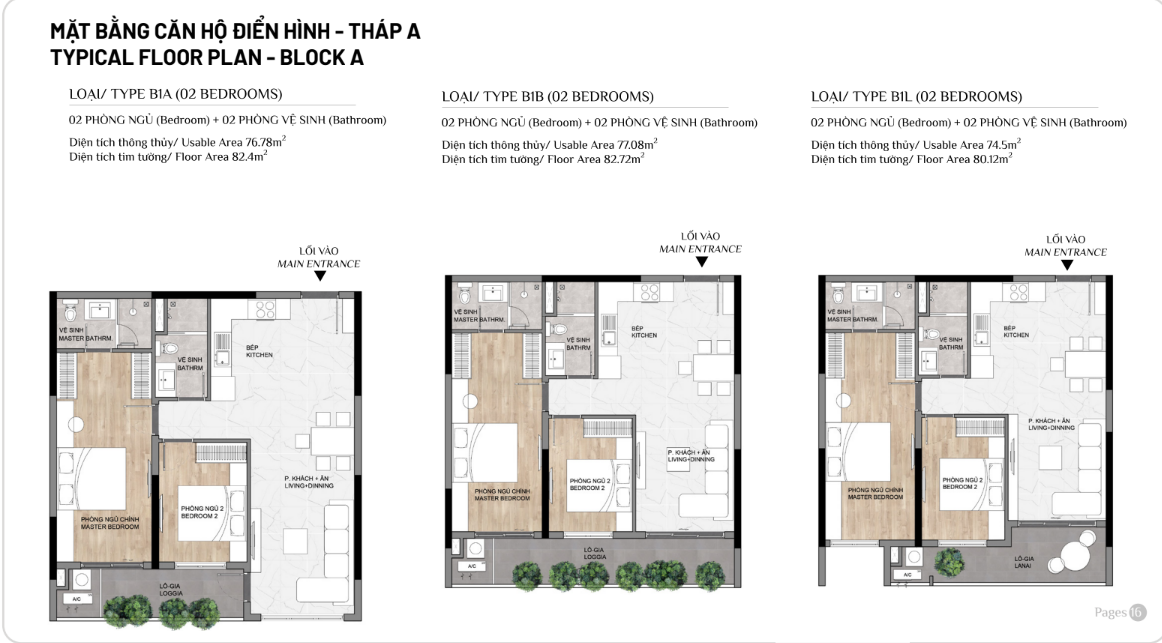 Diện tích: | 45 – 108m2 |