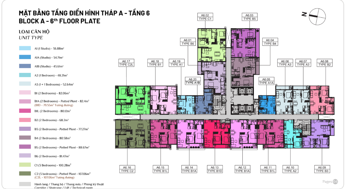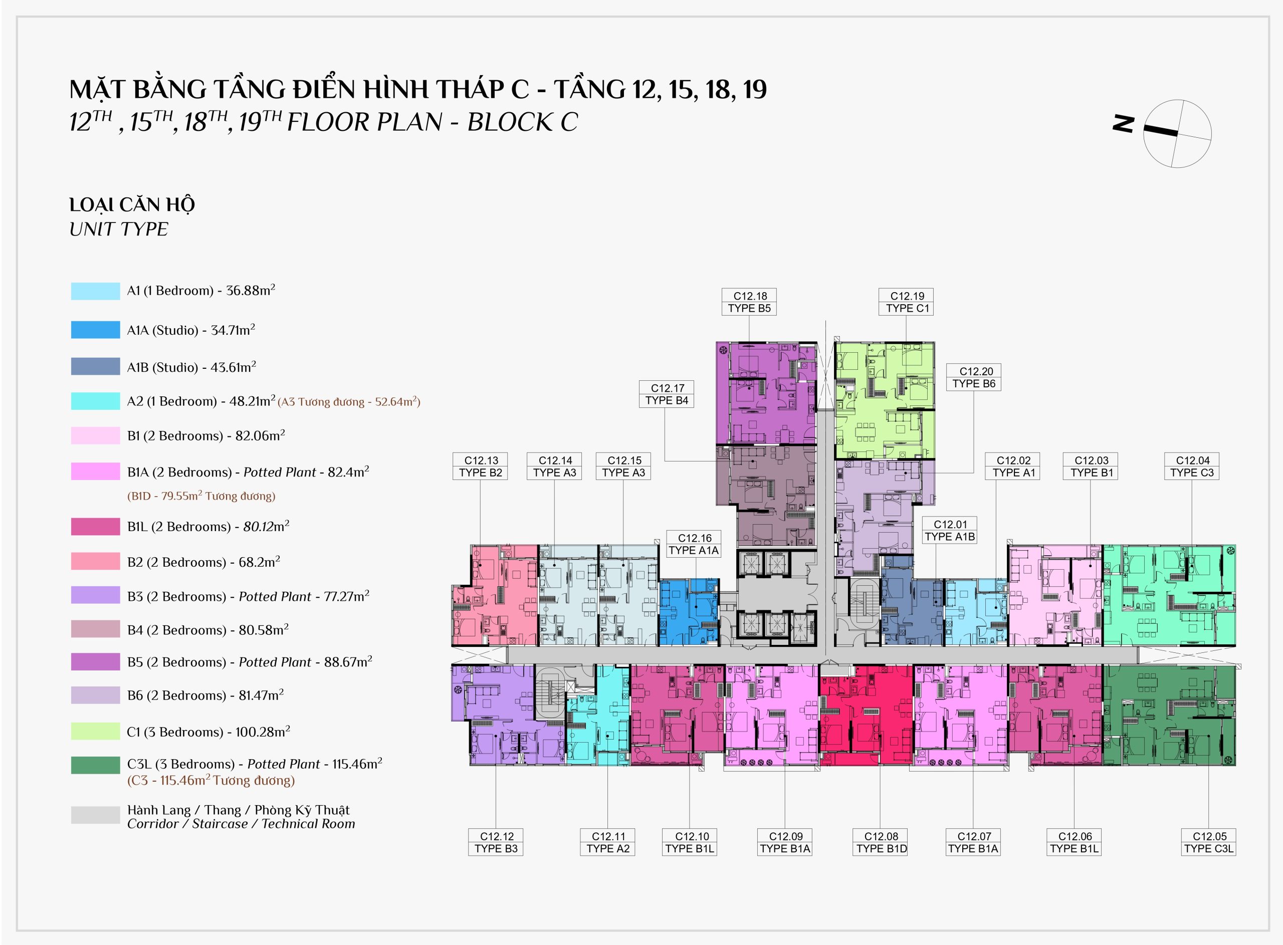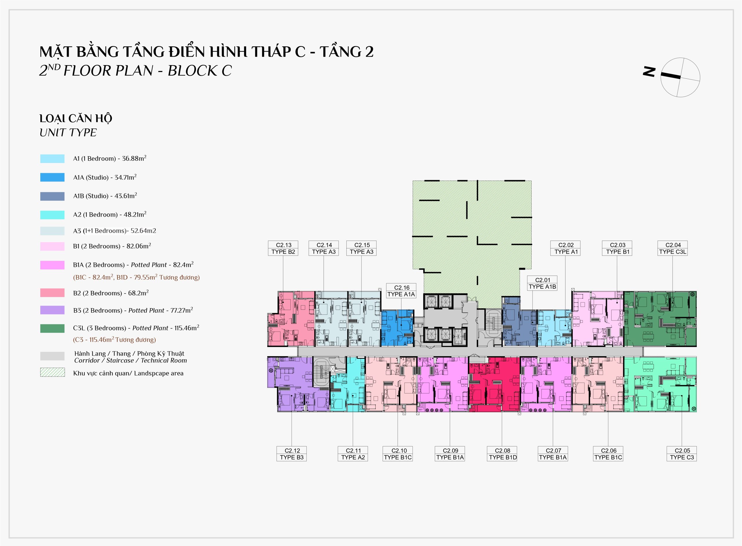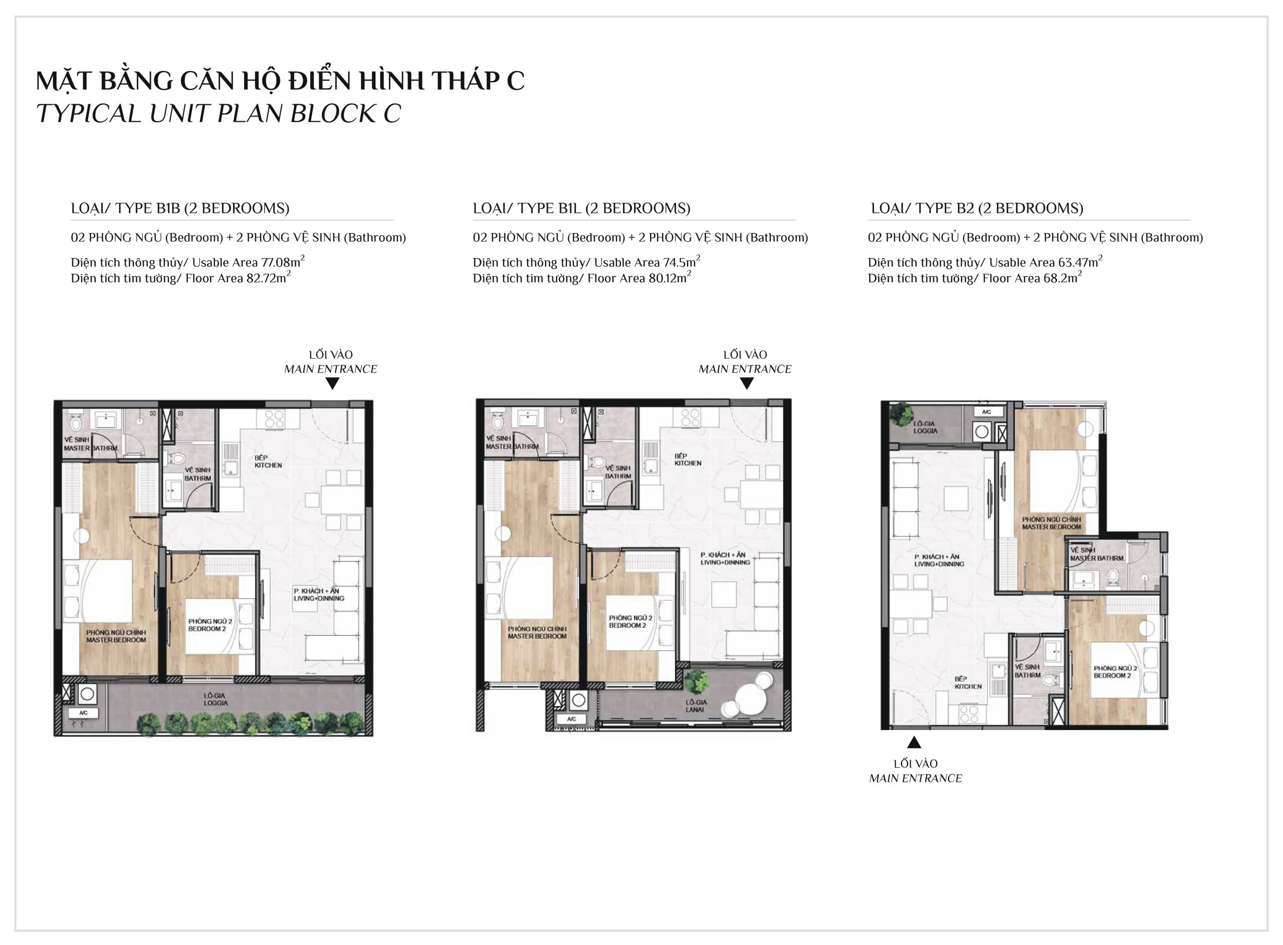 Diện tích: | 45 – 108m2 |