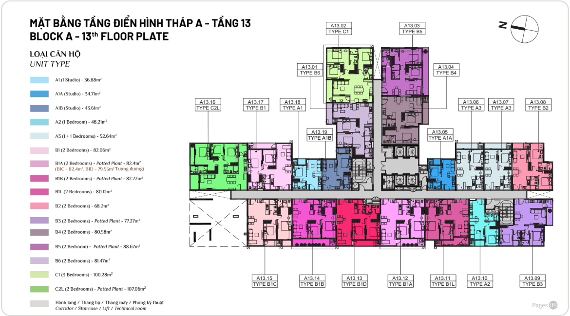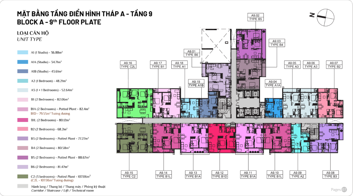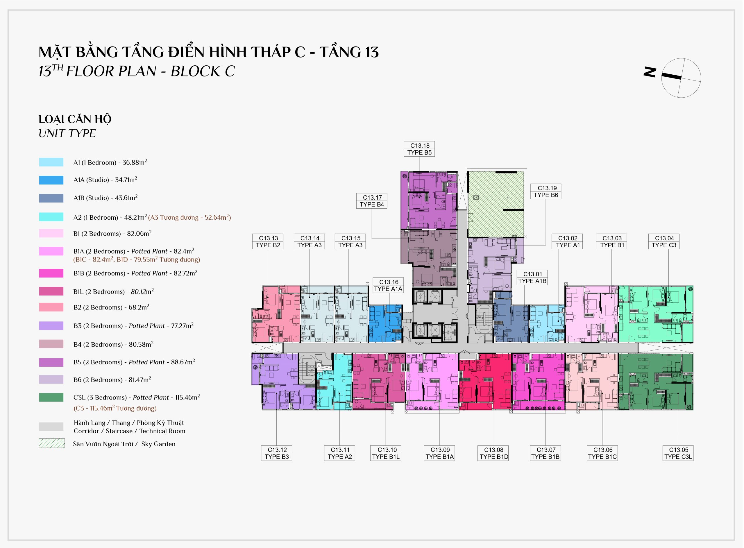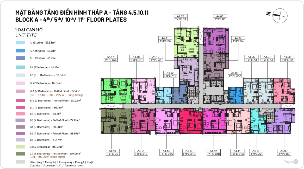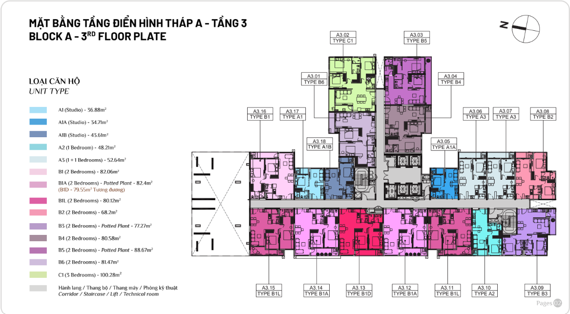 Diện tích: | 45 – 108m2 |