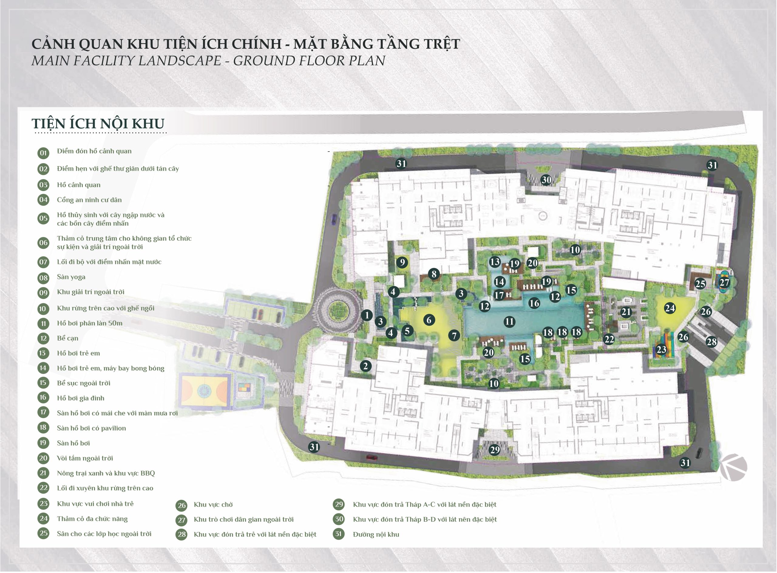 - Khu thể thao, khu vui chơi trẻ em, khu sân chơi nước